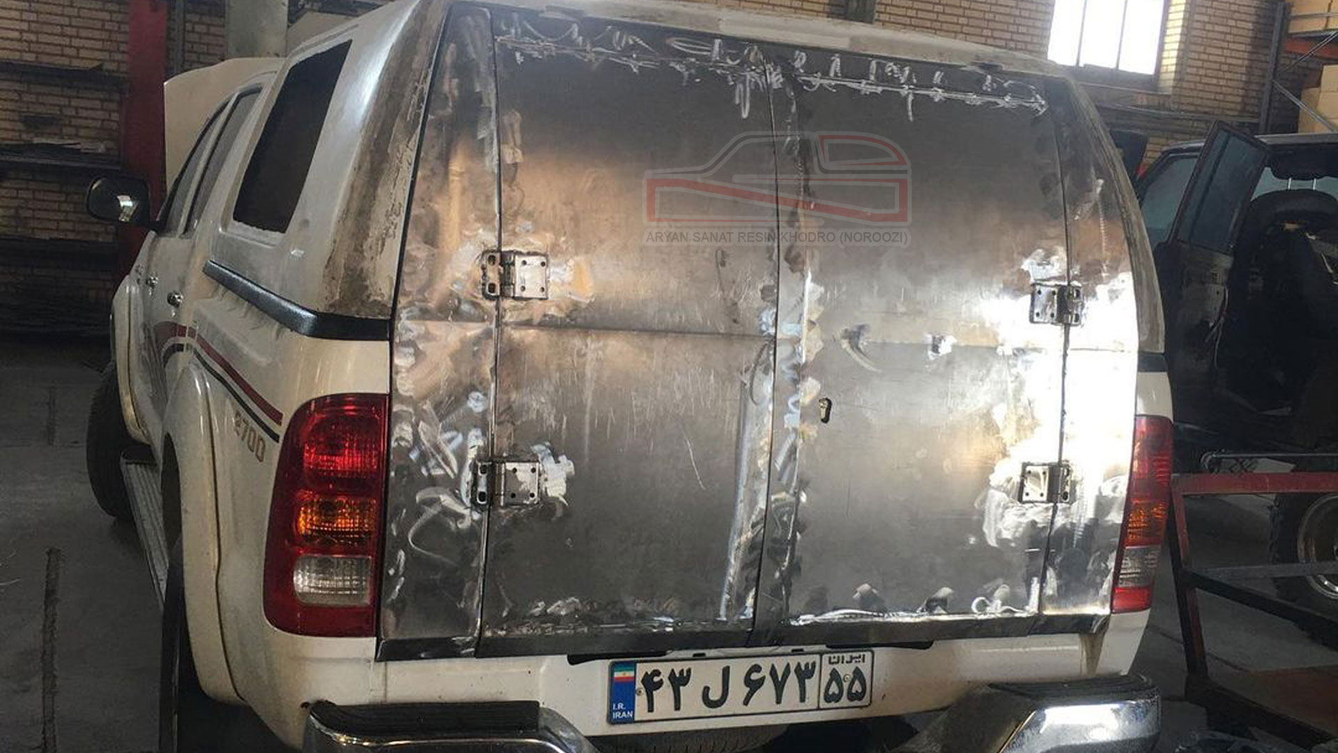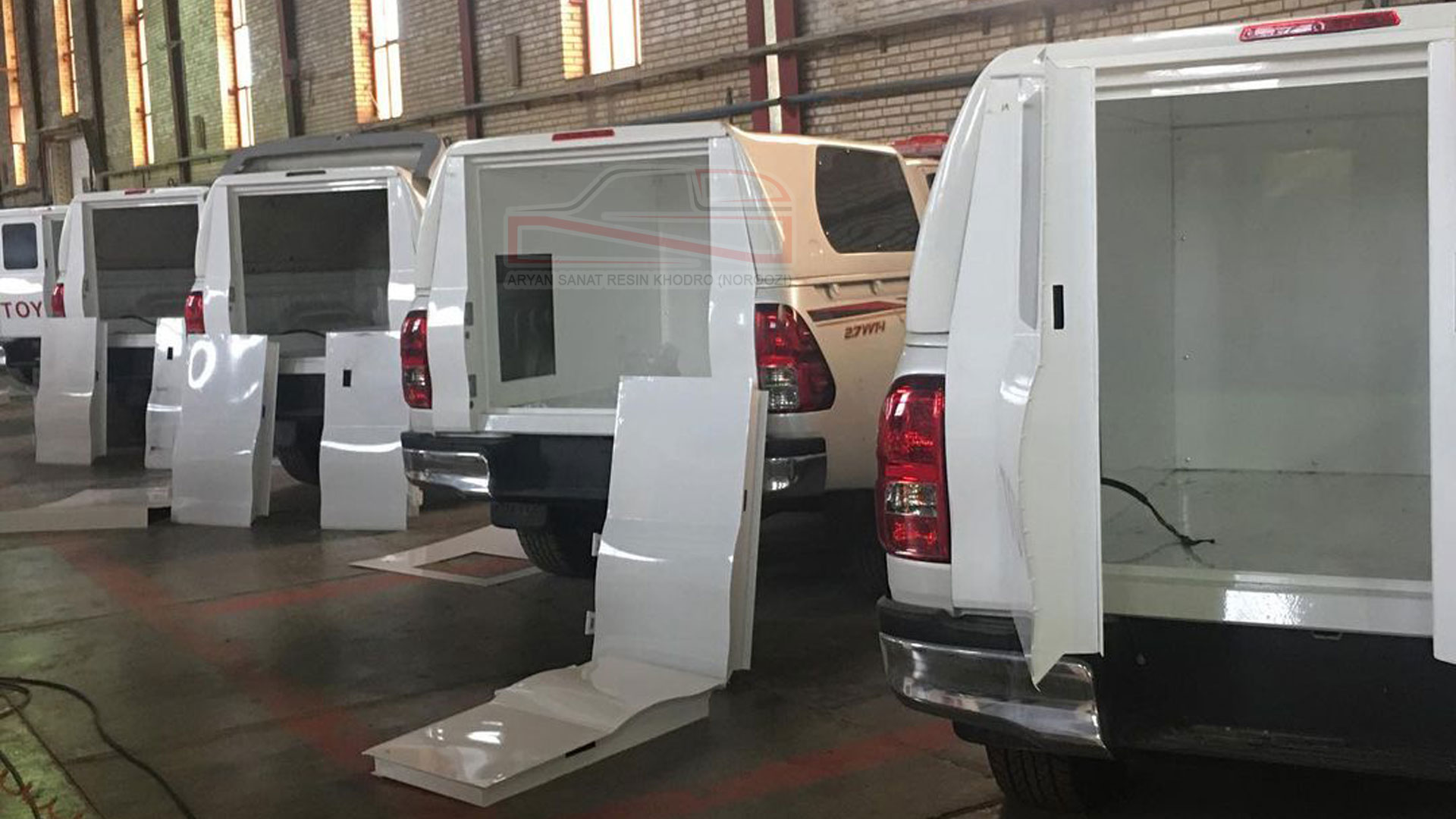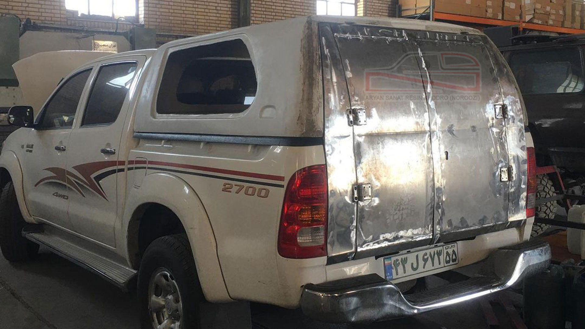 ساخت اتاق هایلوکس بانکی با دو نوع درب با استفاده از فایبرگلاس درجه یک در شرکت آرین صنعت رزین خودرو
